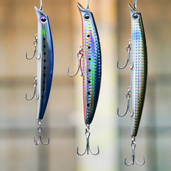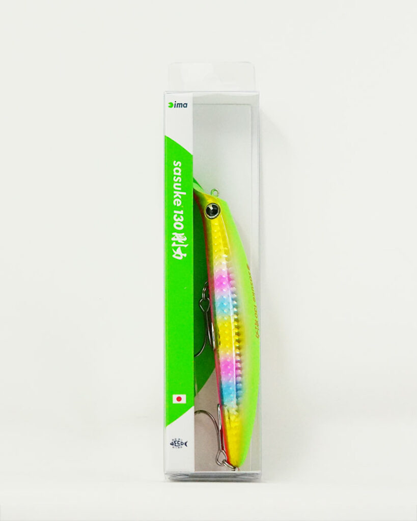 It is characterized by its excellent casting distance and ability to withstand strong winds. Its powerful swimming ability allows it to grab water even in rough seas. You can enjoy fishing in rough conditions and confidently fish for large fish. Equipped with a large #2 hook, this Sasuke is a must-have for targeting lunker sea bass, blue fish, etc.